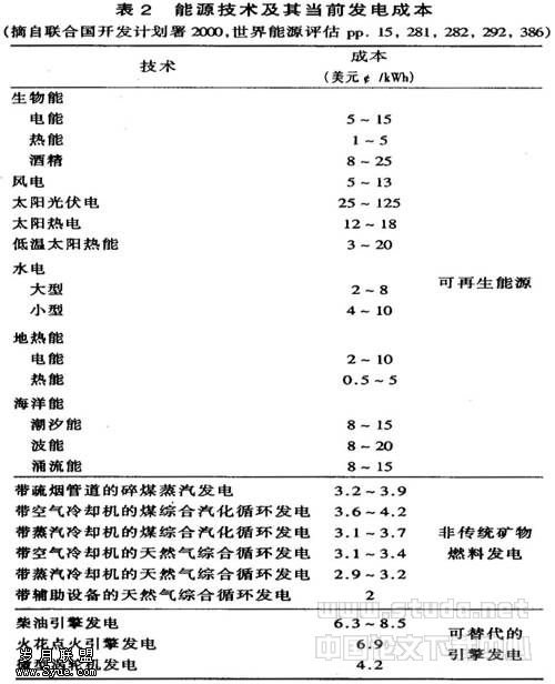 电力价格如何趋于更易被承受是一个基本要求,尤其对那些较贫穷的家来说。因而,电力成本是决策的一个根本标准。如表2所示,最廉价的可再生能源是水电。而且,此处的成本核算还没有将水库综合利用(、供水、航运、娱乐等)方面的附加效益在内。