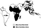 图3世界能源短缺地区(世界能源组织,2002)