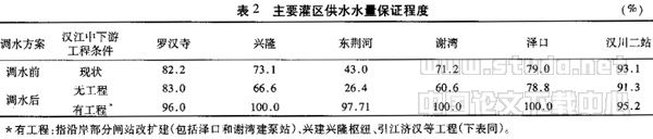 通过以上工程措施,不仅可以消除调水对汉江中下游干流供水区灌溉用水的影响,而且可以使汉江中下游干流供水区的取水条件得到大大改善。