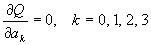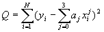 由于Q可以看作关于aj(j=0,1,2,3)的多元函数,故上述拟合多项式的构造问题可以归结为多元函数的极值问题。令