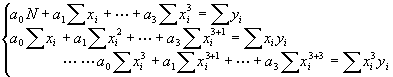 对于给定的一组数据(xi,yi),i=1,2,…,N,寻求作三次多项式(N>3)
