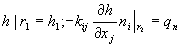 式中:h1为已知水头函数;ni为渗流边界面外法线方向余弦;i=1,2,3;Γ1、Γ2、Γ3和Γ4分别为第一类和第二类渗流边界,以及渗流自由面和渗流逸出面;qn为法向流量,流出为正。