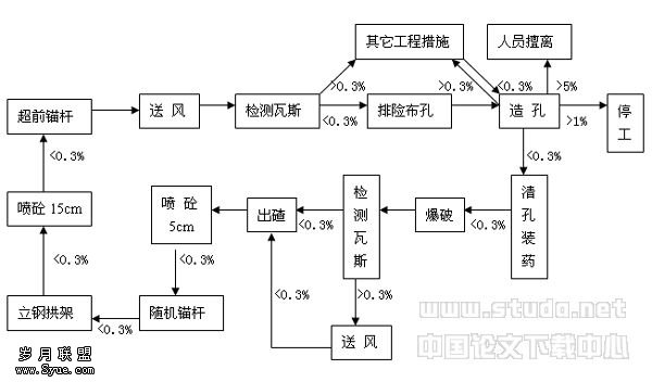 瓦斯检测派专人执守,要坚持“一炮三检制”的原则:即造孔、爆破前、爆破后、进行瓦斯检测,对掌子面、回车道、大缝隙等瓦斯容易聚集的地方尤其加强监测。特殊情况下,在钻造孔以及出碴期间进行多次瓦斯检测。瓦斯浓度超过1%,不得;超过5%可能发生瓦斯爆炸,人员必须撤离现场,及时采取工程措施。只有瓦斯浓度在0.3%以下才能。做到确保安全的情况下正常。