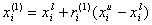 (4)寻求映像点x(a)。计算去掉最坏点x(h)的其余各顶点中心点: