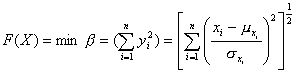根据Hasofer-Lind的定义,可靠度指标β是标准正态坐标系中从原点到极限状态曲面的最短距离。于是,求可靠度指标的问题就转化为数学上的优化问题(求最小值问题)。经过分析,求解可靠度指标的问题最终可转化为如下的优化数学模型: