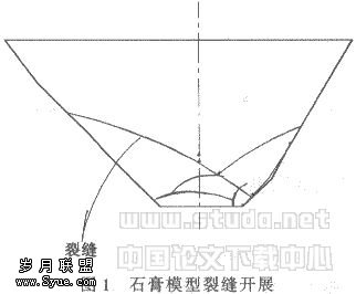 常态混凝土拱坝模型试验研究,一般用石膏模型进行模拟。石膏为脆性材 (a)1.5倍设计水压力 (b)2.8倍设计水压力 图3 碾压混凝土层面开展情况(阴影部分代表开裂)