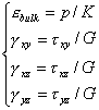 式(12)中第一个方程与式(2)等价,其中εbulk为流体的体应变,对于水体,其体积压缩模量可近似地取为K=2.067×109Pa;τ、γ分别表示流体的剪应力与剪应变,剪切模量可取为一个小的正数,可取G=K×10-9,流体的泊松比可近似取为μ=0.5。
