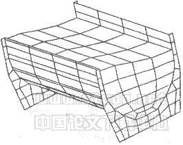4.2 U形槽身 以广东省东江—深圳供水改造工程中的U型渡槽为例[7],图3为流体在槽内的一阶横向晃动模态,流体—边界采用滑动边界,有限元计算槽内水体晃动首阶频率为f=0.3224Hz,边界元计算结果为f=0.3413Hz,两者相当接近,相对误差为5.5%。