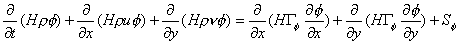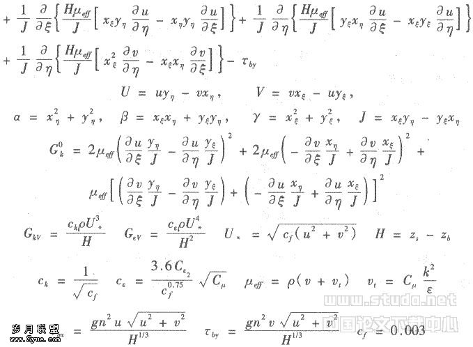 笛卡儿坐标下深度平均的k-ε双方程紊流模型的通用微分方程:
