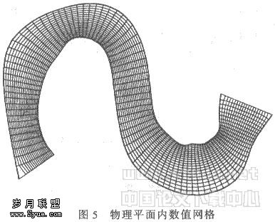 本文对计算区域用Laplace方程实施坐标变换,生成正交的贴体网格,控制方程: