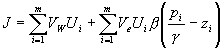 式(4)中Vw、Ve分别为水、电的单价,Ui为某泵站的供水量,β为用电量的单位换算系数,(Pi/γ-Zi)为泵站i送出的压力水头与泵站i吸水池水面标高之差,即泵站的扬程,i=1,2,3,…,m,为泵站号。