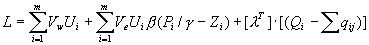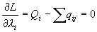 时,L取得最小值,即J的最小值,n为节点总数,m为水源总数。Lmin(q,p,λ)的最优解