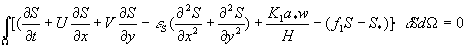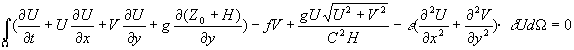 式δH,δU,δV,δS表示求解变量的变分,Ω表示域。