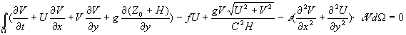 式中Ui为垂线平均流速;H为水深;Z为水位;C为谢才系数。 C=1/nR1/6(水力半径R=H),g,ρ,ε分别为重力加速度,水密度和粘滞系数。f为科氏力系数(f=2ωsinφ,ω为地球自转角速度,φ为地理纬度)。 |