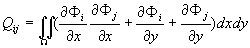 对以上各式,当在同一项中含有两个相同的下标时,就意味着该项表示在单元体内全体同节点编号项的叠加;根据以上积分式先对各个单元分析,再叠加全域各单元方程式并使之满足边界条件即得到整体有限元方程式。