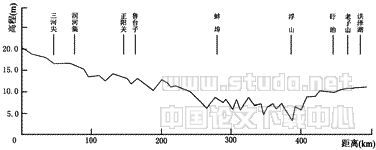 与入海河口不同,入湖河口拦门沙外侧为湖心滞水区,没有周期性的潮汐涨落、潮流往来,因而有利于细粒悬浮质河流输沙停积,使得湖底逐渐淤浅,到一定时间后湖底有可能高于拦门沙顶。公元1870年测量时洪泽湖底尚低于废黄河河床一丈至一丈五、六尺(合3~5m)④,而到1916年测量时湖底与废黄河河床海拔高度均为10m左右,湖底有厚达1丈5尺(合5m)的“稠淤”⑤,由此推算得年平均沉积速率在10cm/a以上。根据民国初年的测量,“洪泽湖底乃高于上游盱眙淮底二尺许,盱眙淮底又高于上游五河淮底五尺许,由五河口至寿县一带三四百华里之间淮底,几无倾斜,而五河稍东浮山附近之淮底,乃至低于洪泽湖底五丈有奇”⑥。1938~1947年间黄河南泛把约3.6亿m3泥沙带入洪泽湖,全湖沙洲平均淤高1~1.2m[4]。根据淮委近年的测量,洪泽湖底海拔10~11m,位于洪泽湖河口的老子山处河床海拔9~10m,高出浮山处河床4~5m(图3)。此外,洪泽湖底高出苏北里下河区近10m,是名符其实的地上悬湖。 |