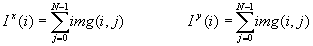 将N×N二维图像img(i,j)平均为两个一维图像Ix(i)和Iy(j)