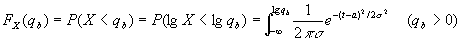 根据概率论中心极限定理,由诸微小而独立的随机因素引起并累积而成的变量,必将是一个正态随机变量[6]。由此导出1gqb服从正态分布N(a.σ),即qb服从对数正态分布,qb的概率分布可记为