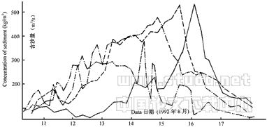 TBZThe first flood peak discharge and corresponding sediment concentration in August 1992