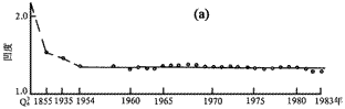 由图1(a)可以看出,从晚全新世地层底板到1954年,纵剖面的凹度是逐渐减小的,但到了1954年后,即从1954~1983年,曲度指标的变化就不大了,即多年平均凹度为1.35,分别比晚全新世地层底板、1855年和1935年的纵剖面凹度减少了37%,12%和7.5%,其均值与1954年以来最大和最小凹度相比,分别小于3%和大于3.7%。