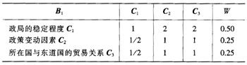 表2 政治风险B1的判断矩阵