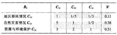 表5 环境/移民风险B4的判断矩阵