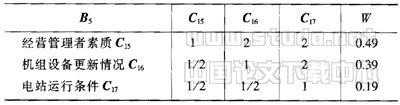 经营管理风险是指项目公司在项目经营和管理过程中,由于外部环境的变化或经营者的行为疏忽,直接影响到项目的获利能力,包括经营管理者的素质C15、机组设备维护更新情况C16以及电站运行条件C17等.