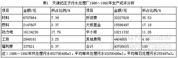 众所周知,我们建设污水处理厂不是最终目的,我们的目的是保护水环境保护水资源。所以,如何把污水处理厂运行好就特别重要,天津市纪庄子污水处理厂1986~1992年一直保持良好运行,共处理了6.53亿m3污水,运行费用为人民币9070万元。相当于污水处理厂的总投资费用。以此推算,如果建设一座处理量为10万m3/d的城市污水处理厂其投资为1.0亿元的话,那么该厂每年的运行费约需1500万元。所以一些城市建不起污水处理厂,一些城市建了污水处理厂却没有能力运行或没有能力开足马力运行。也有热衷于建设污水处理厂而不关心污水处理厂的运行,也不积极解决污水处理厂的运行经费,听任污水处理厂开工不足甚至接近停产。所以笔者认为污水处理厂有必要由当地环保部门安装在线监测仪表,应对污水处理厂每年处理的污染物总量进行考核。天津纪庄子污水处理厂就曾经按所处理的污水量由财政部门拔款,处理量与运行经费挂钩是十分必要的。