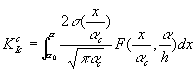 因此,在临界状态时,在虚拟裂缝区内由闭合力σ(x)产生的断裂韧度KcIc为: