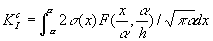而闭合力σ(x)产生的应力强度因子(负值)可由文献[5]所给的公式计算: