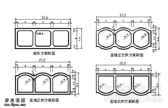 图4-1 倒虹横断面比较图 尺寸单位:米