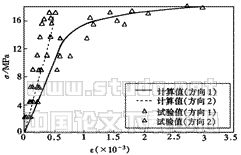 Mazars损伤演化方程计算得各试件的损伤度D*如表2.? 显然,在三维情况下,Mazars损伤模型同正交异性损伤模型有重大的区别:(1)正交异性模型损伤具有方向性,整个单元体的损伤用主应变三个正交方向上的损伤度值来描述;(2)Mazar损伤模型中,在双向或三向拉应变情况下等效应变值较大,相应的双向拉压或多向拉压应变情况下等效应变值小,因此双向或三向拉应变损伤度较大;而正交异性损伤模型与此正好相反,某一方向的拉应变对其他正交方向的损伤没有影响。双向拉压或多向拉压应变情况下会使得受拉方向上的损伤增大。 |