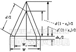 当w>wc时,裂缝长度扩展为d′,而wc/w=d/d,所以,再由式(4)得 |