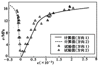 对于碾压混凝土材料,试验证实,双轴拉压状态下,一个方向压应力的增大可明显的降低另一方向的抗拉强度;而在双轴拉状态下,一个方向的拉应力对另一方向的抗拉强度影响很小。因此应用正交异性损伤模型进行碾压混凝土的计算分析是合适的。