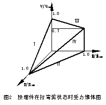 4.4 预埋件在拉、弯、剪三维应力作用下,预埋件所能承受的应力强度公式,取偏安全的线性相关方程如下: