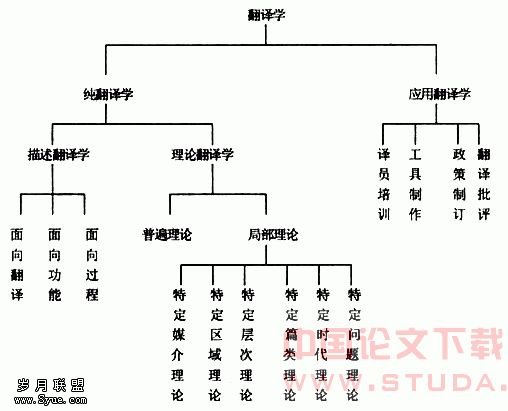 近现代人文科学的推动了翻译理论的发展,对翻译理论的层次性开始有了清晰的认识。比较于有代表性的是Holmes对译学理论体系的划分, Holmes将翻译学分为三大分支:一、描写翻译研究(Descriptive translation studies),下面分为三个小的分支,1、面向译本的描述翻译学,即对已有译作进行描述的翻译研究领域。2、面向功能的描述翻译学,即主要研究译本在译语的社会文化环境中所发挥的作用。3、面向过程的描述翻译学,即主要研究译者在翻译时头脑中的“小黑盒子”是如何运作的。二、翻译理论(Translation theory),即利用描述翻译学的研究成果,加上相关学科及专业提供的资料,出一些原则、理论和模式,以解释和预测翻译的过程和成果。详细内容请见下表。从表中我们可以看出,Holmes认为描写翻译研究和翻译理论同属纯研究性质。第三部分内容是应用翻译研究(Applied Translation studies),也就是Holmes称为 “务实”而非“务虚”的理论部分,包括翻译教学,翻译工具,翻译政策和翻译批评。另外,Holmes还在他写的“翻译学的名称和性质”中补充指出,翻译学的三个分支中还有两个问题尚未提及,首先是翻译史问题,另一个便是翻译学里面使用什么方法和模式最好的问题。