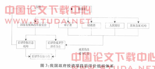 要改善我国后评价工作分布零散,后评价工作和成果缺乏统一协调与管理的现状,首先必须建立结构清晰的后评价管理组织体系。国务院是我国的最高国家权力机关的执行机关,国务院下设有发改委、审计署、财政部、人民银行等行政机构,政府投资项目均需这些行政机构审批、监督。其中发改委承担规划重大建设项目和生产力布局的责任,安排中央财政性建设资金,按国务院规定权限审批、核准、审核重大建设项目、重大外资项目、境外资源开发类重大投资项目和大额用汇投资项目。指导和监督国外贷款建设资金的使用,引导民间投资的方向,研究提出利用外资和境外投资的战略、规划、总量平衡和结构优化的目标和政策,组织开展重大建设项目稽查,指导工程咨询业发展。