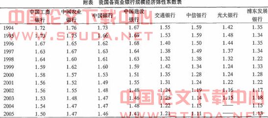 利用上面计算的参数估计结果,可以计算出各商业银行的规模经济(sE)弹性系数如附表所示。