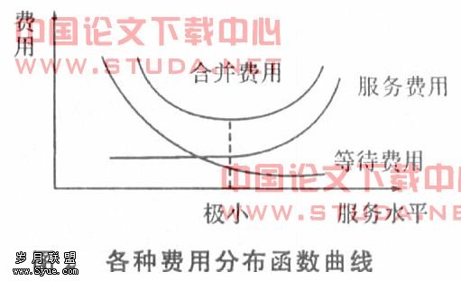 一般情形,服务费用是可以确切计算或估计的。顾客的等待费用也是可以得到的。比如,由于队列过长而失掉潜在顾客所造成的营业损失,可以根据统计经验资料来估计;服务水平,一般用平均服务率来表示(代表服务机构的服务能力和经验等);其次是服务设备等都可以看做成本。可以算出各种费用的分布函数,做出函数曲线,从而求出费用最小的最短等待时间。如图2所示。