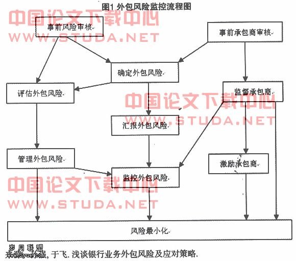 针对外包存在的各种问题和可能带来的各种风险,可以设计如下的风险监控流程图,从外包的全过程进行监控,主要分为两条主线,一是对外包业务进行监控,二是对承包商进行监控,两条线同时并循环进行确保将各种风险降至最低。