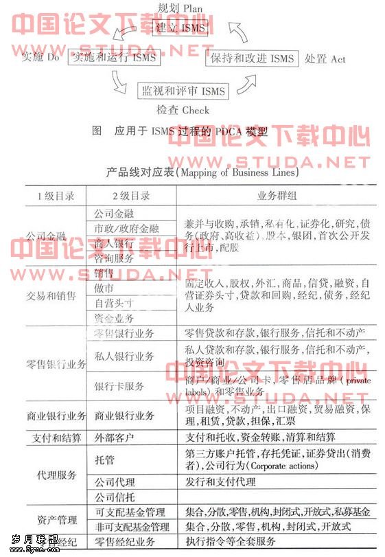 巴塞尔委员会给出了管理操作风险的十大原则,但这些原则都是从宏观角度要求商业银行应该建立什么 样的组织、制度和流程,并未给出管理操作风险的详细方法和手段。实际工作中,我们发现信息资产是商业银行极其重要的一类资产,在信息时代,一个机构要利用其拥有的资产,特别是信息资产来完成其使命,因此,对信息资产的管理关系到该机构能否完成其使命的大事。然而,由于信息资产对IT系统的依赖性很强,绝大部分具有无形化、易变化、易传播的特点,且风险存在于其产生、传递、使用和销毁等各个环节,与一般银行产品相比,具有很大的独特性。所以,我们建议将此类资产作为商业银行一类独特的产品线来进行管理。在实践中,我们发现ISO27001为有效管理组织的信息资产、确保信息安全提出了一整套要求和最佳实践指南。它从11个方面对信息资产的安全管理提出要求,其管理思想完全符合操作风险的管理原则,并且是在其原则基础上的细化,如高层管理的支持和承诺、资源管理、风险评估、内部审核、信息的沟通、有效性测量和改进,等等。可见,ISO27001不仅适用于多数IT软硬件开发等,同时也适用于银行、保险等信息化程度较高的金融行业。