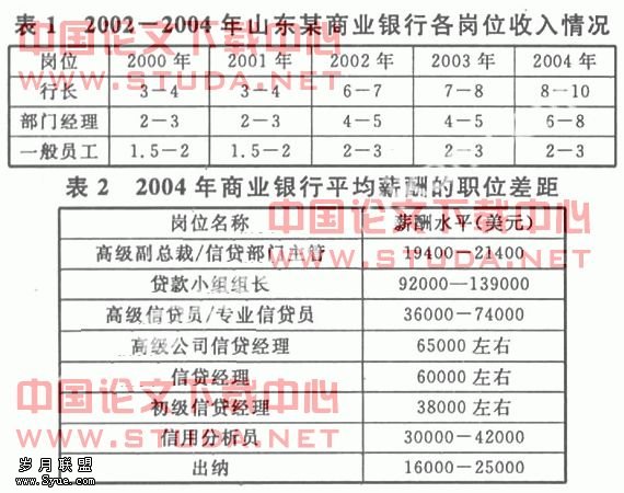 在我国目前的水平和商业银行的盈利能力与经营水平下,薪酬这一典型的物质激励方式依然是商业银行最主要的激励方式。长期以来,我国商业银行的薪酬体系是典型的行员等级工资制度,实际上就是计划经济体制下国有专业银行的行政工资体制。在这一体制下,员工之间工资按照员工行政级别划分,级别之间的差距较小,员工收入提高只能以来行政级别晋升,而没有其他途径可以选择。这样的薪酬体制,不能体现简单重复劳动与复杂经营、技术劳动之间价值的区别,看似“平均”而实质上是最大的不公平。我国各家商业银行,受到总行严格的行政管理,工资费用预算约束很严,各家银行薪酬自成体系,不能体现出同一银行内部经济效益好坏、地区生活水平需要等差距,也很少有银行关注本地区同业竞争对手的薪酬水平,以及竞争对手对自身人力资源队伍的稳定的影响。许多银行根本没有外部薪酬调查的概念,也没有市场指导工资价位的标准,使得自身薪酬水平与市场环境的变化相脱节,根本不具备“外部的竞争性”。