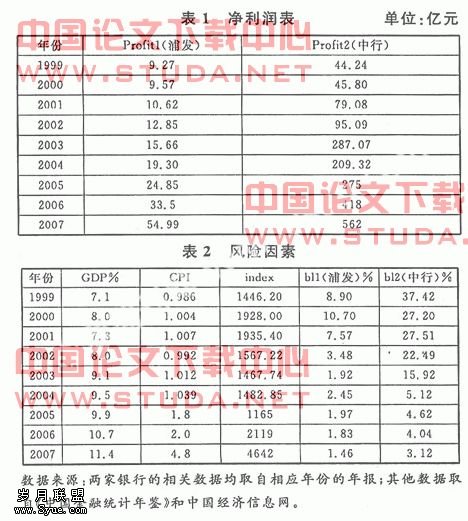 为了方便数据的获取且使数据具有一定的代表性,我们选择股份制商业银行浦东发展银行和国有商业银行银行作为研究对象,进行一定的比较研究。具体数据见表1、表2: