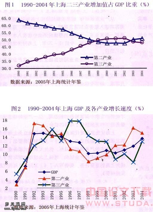 以上海为代表的东部沿海发达城市在经济服务化方面走在了前列,并且代表了中国经济的发展方向。不失一般性,我们以上海为例对这一趋势进行分析。