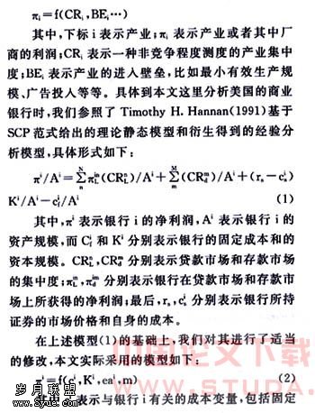 本文利用标准普尔公司提供的美国商业银行业Panel数据,在SCP框架下对美国商业银行业绩效关系进行了经验研究。文章主要的结论如下: