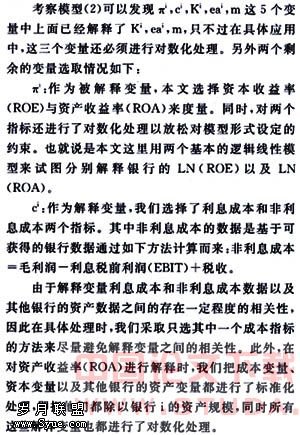 需要说明的是,资本利润率和资产利润率的确可以在一定程度上反映银行经营的效率,但是他们并不能完全体现。因为净利润本身很难说明商业银行自身所潜在的、日常经营的关键要素——风险。不仅如此,行业因素或者货币市场因素对应变量的选择还值得进一步的研究。囿于数据的可得性和此类问题的一般研究思路,本文也只好选择这些指标和变量来进行分析。