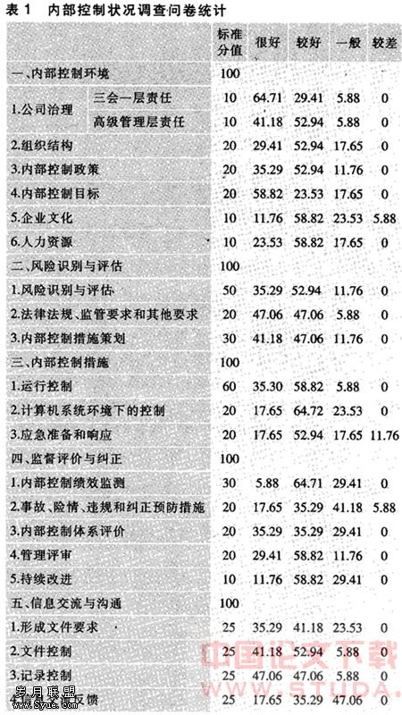 5.数学模糊综合评价的结果分析。由以上计算结果可知,(1)该银行的内部控制各要素中,风险识别与评估的分数最高,说明调查者普遍认为该银行的风险识别与评估方面做得相当好。这与该银行建立的一系列风险管理制度是分不开的。(2)接受调查者认为信息交流与内部控制措施都接近较好,内部控制环境和监督评价与纠正一般偏较好。(3)接受调查者认为该银行的内部控制综合情况一般偏较好。