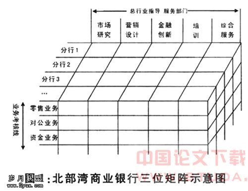 根据现代企业组织理论并借鉴国际先进商业银行组织形式,我们提出北部湾商业银行组织结构矩阵型组织形式,如下图所示,