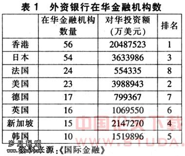 从表1可以看出,港资银行在中国的机构最多,对华直接投资额独占鳌头,其它外资银行在华金融机构也与直接投资额密切匹配。