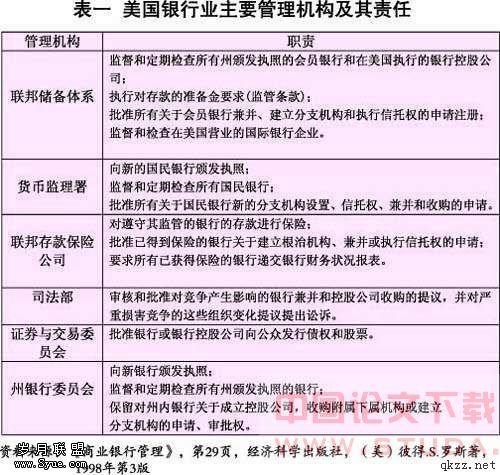 ①重要的监管大法有:1863年《国民银行法》;1913年《联邦储备法》;1933年《格拉斯-斯蒂格尔法》;1978年《国际银行法》;1980年《放松存款机构管理与货币控制法》;1989年《金融机构改革复兴与加强法》;1991年《联邦存款保险公司改善法》,1999年《金融服务化法案》等。